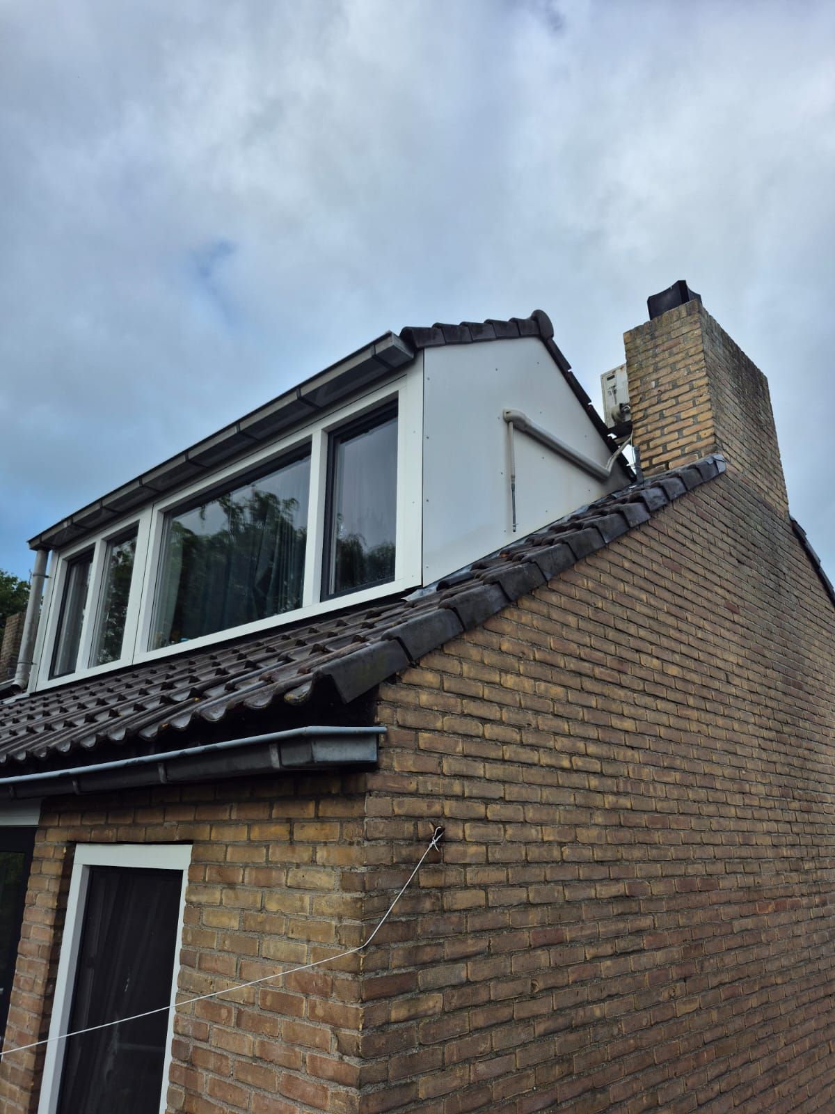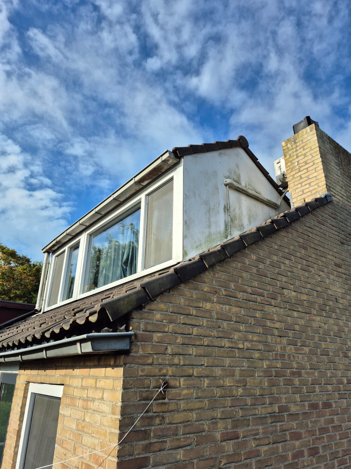 Enorm vieze dakkapel weer stralend door een combinatie van juiste chemicaliën en borstelbewassing. Veilig en efficiënt!